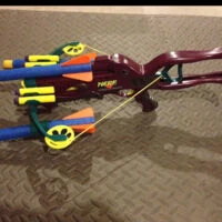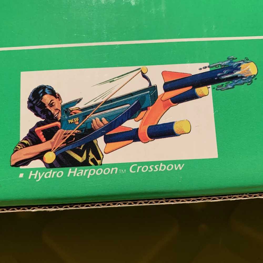 The Harpoon Crossbow was meant to be released alongside the Hydro Bazooka for Hydro's debut year, but was seemingly pulled last-minute. The two most plausible explanations are that it was too hard to get functioning properly or that it was too realistic of a blaster compared to others in the nerf brand at the time. Despite this, the Harpoon Crossbow can be seen on many Hydro Bazooka boxes and even is briefly seen in the commercial for the Hydro Bazooka. It was cancelled, however, and the limited Hydro Torpedoes that were made to go with them were instead sold in their own refill pack.