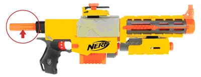 The Recon CS-6 recall was an event that took place in 2008. This recall was about the plunger tube which, before the latest model, had no black bar at the end of it and instead had the plunger tube exposed. It could tear someone's skin if the plunger caught hold of one's fingers. After this had occurred several times, Hasbro issued the recall and took all remaining stock of the Recon CS-6 off of store shelves. Only blasters purchased from November 2007 to August 2008 were affected. Later, the Recon had a black damper attached to the plunger tube, thus, reducing its performance.